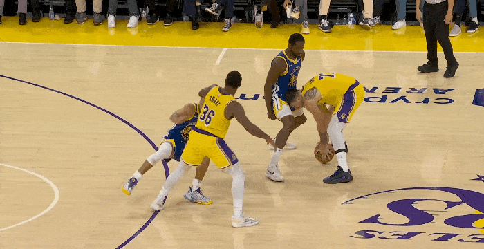 在湖人隊(duì)的一次進(jìn)攻中,東契奇呼叫斯馬特前來(lái)掩護(hù),跟防斯馬特的庫(kù)里一路貼防,隨后斯馬特為了擺脫庫(kù)里將自己的胳膊插入庫(kù)里腋下,隨后做出了一個(gè)卸胳膊的危險(xiǎn)動(dòng)作將庫(kù)里掀翻在地。